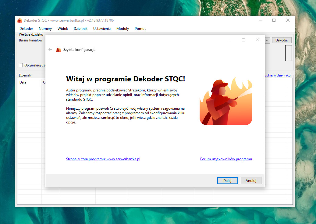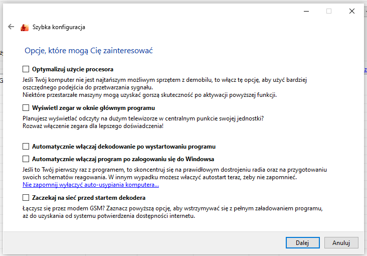Okno, które przyśpiesza wstępną konfigurację programu