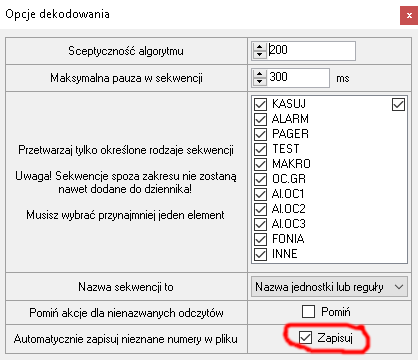 - Pomijanie nienazwanych odczytów powinno przepuszczać sekwencje specjalne, których nie da się nazwać, ponieważ nie zawierają informacji o miejscu wystąpienia alarmu