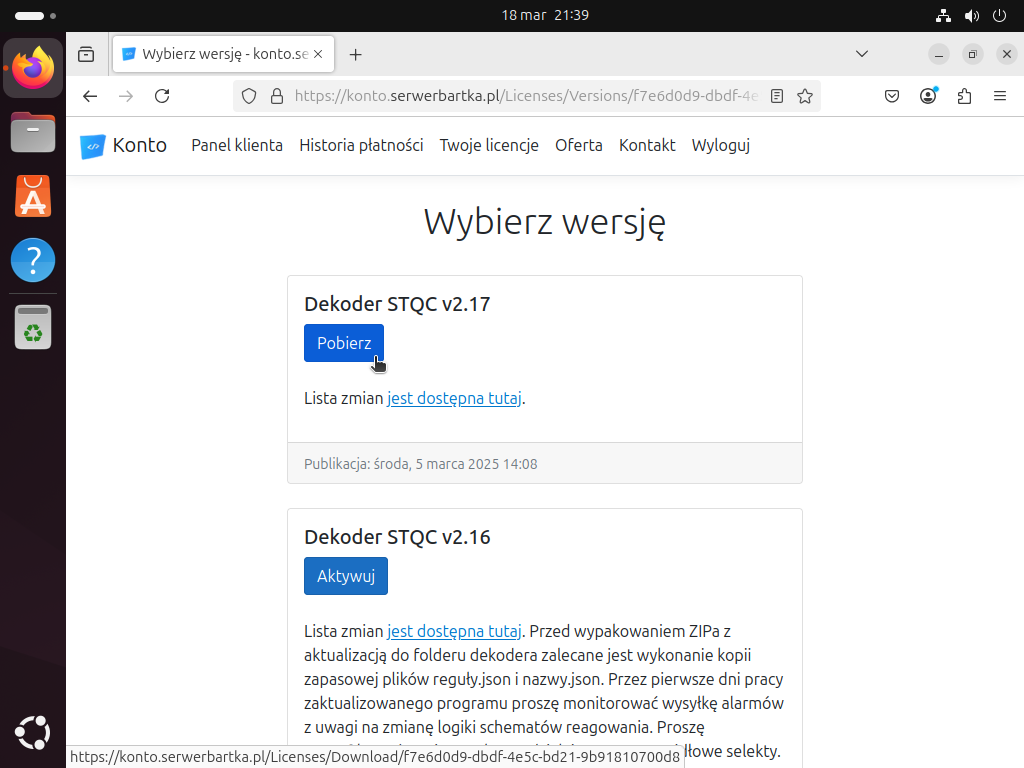 Dekoder STQC jest przeznaczony dla systemu Microsoft Windows 10 i 11. Można go zmusić do pracy na Windowsie 7, teraz także na Ubuntu ![]()