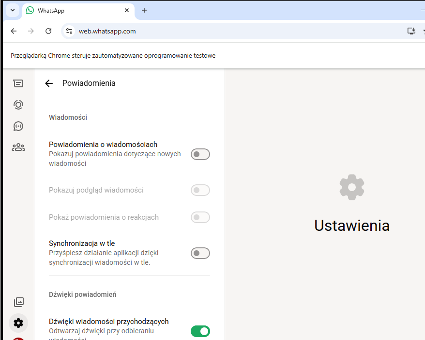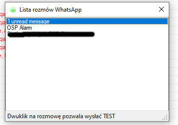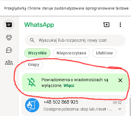 Wtyczka w tym momencie głupieje po w regułach powiadomień nie odnajduje nazwy przypisanej nazwy rozmowy WA i wyrzuca błąd “Niedostępna rozmowa” (fot.3)